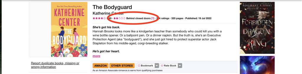 Of course, it’s not a perfect system – not every book is included on Romance IO (although I’ve been happily surprised by how robust the site is!) and they don’t take language into consideration which is a big factor for some readers.