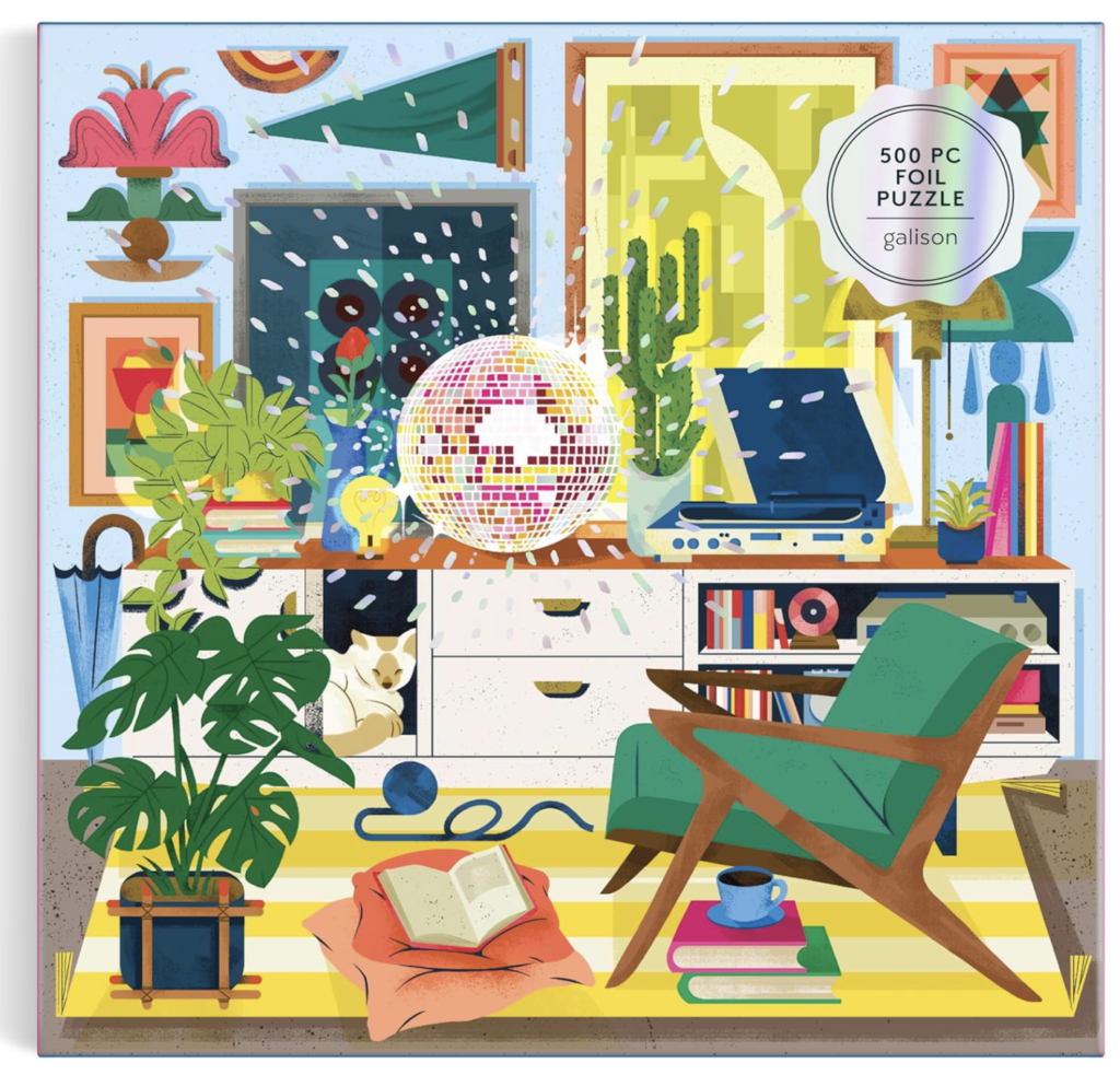 My goal this year is to work on a puzzle every single day, and I really loved this 500 piece puzzle (the foil disco ball was especially delightful) and I won’t forget the audiobook I listened to while completing it.