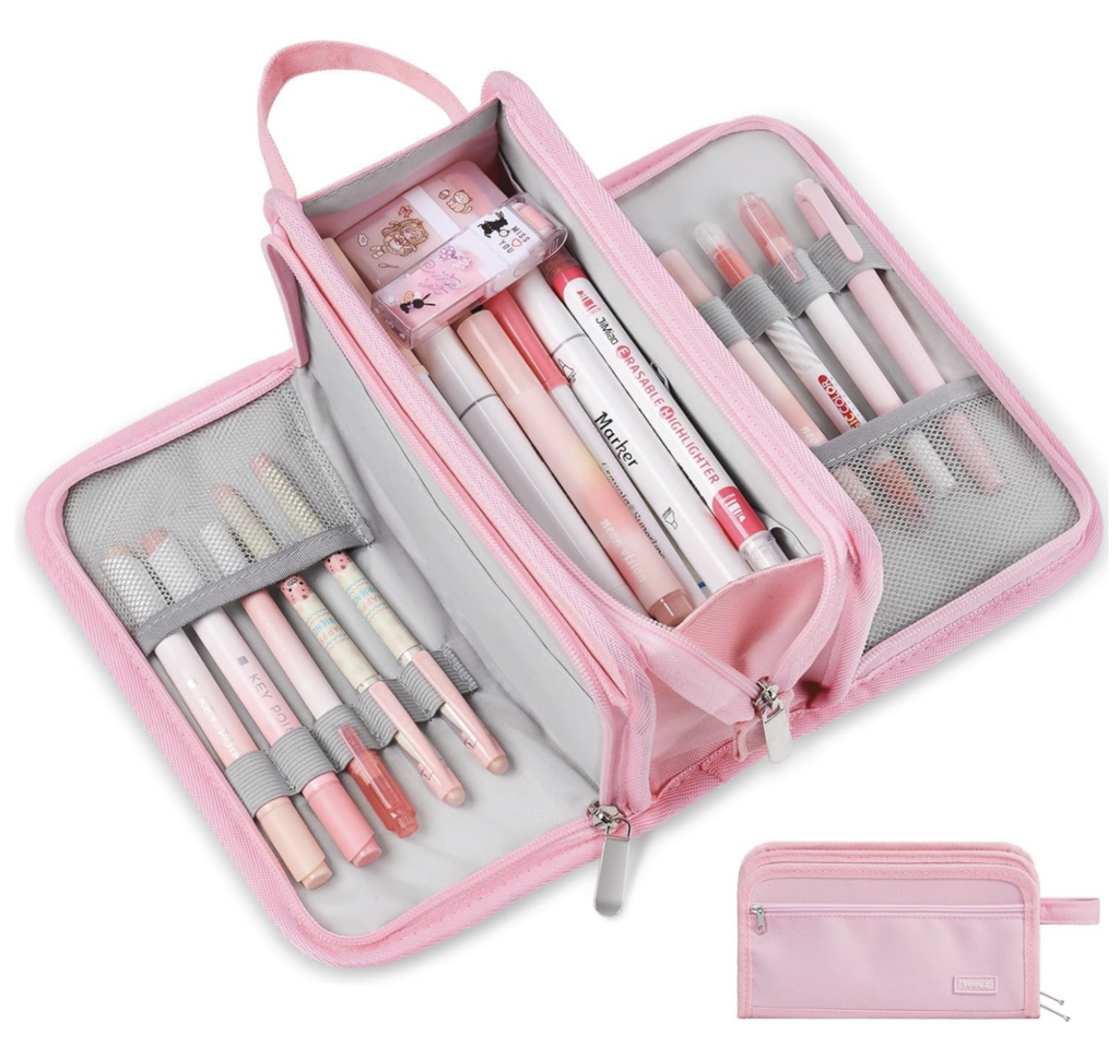 This has been the #1 most-used gift I got my girls for Christmas – and two months later, they still use it daily. These pencil cases are under $10 (some under $8!), hold a ton, stay open for easy access, and keep all their art supplies neat for school, church, and travel. Perfect for spring break road trips or as a fun Easter basket gift with fresh markers or colored pencils!